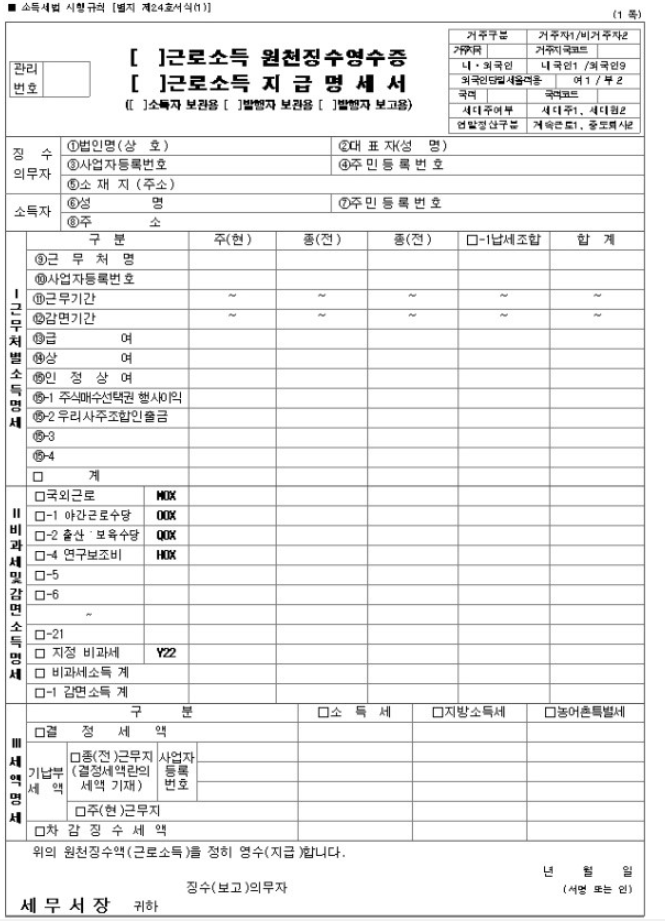근로소득원천징수영수증 vs 갑종근로소득원천징수영수증