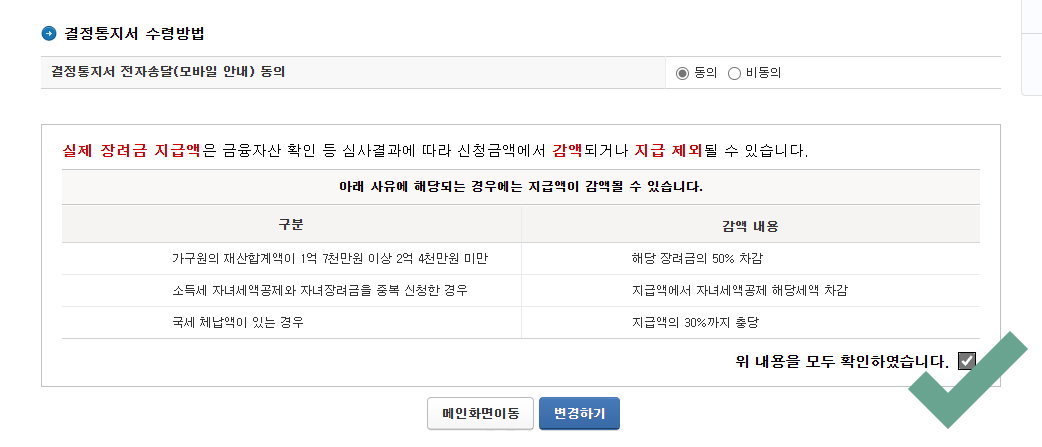 실제 장려금 지급액은 금융자산 확인 등 심사결과에 따라 신청 금액에서 감액되거나 제외될 수 있습니다.