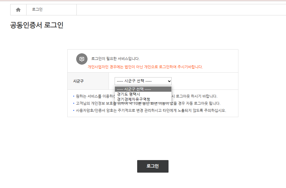 3. 공인인증서로 로그인을 합니다