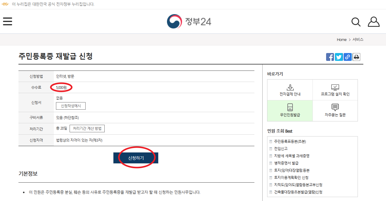 주민등록증 재발급 신청 | 민원안내 및 신청 |정부24 (gov.kr)