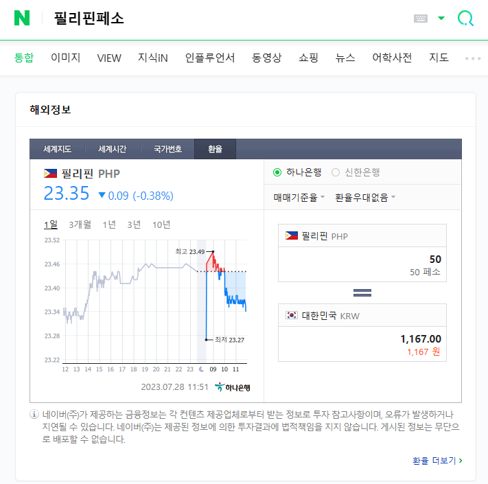 2023년 7월 20일 필리핀 페소