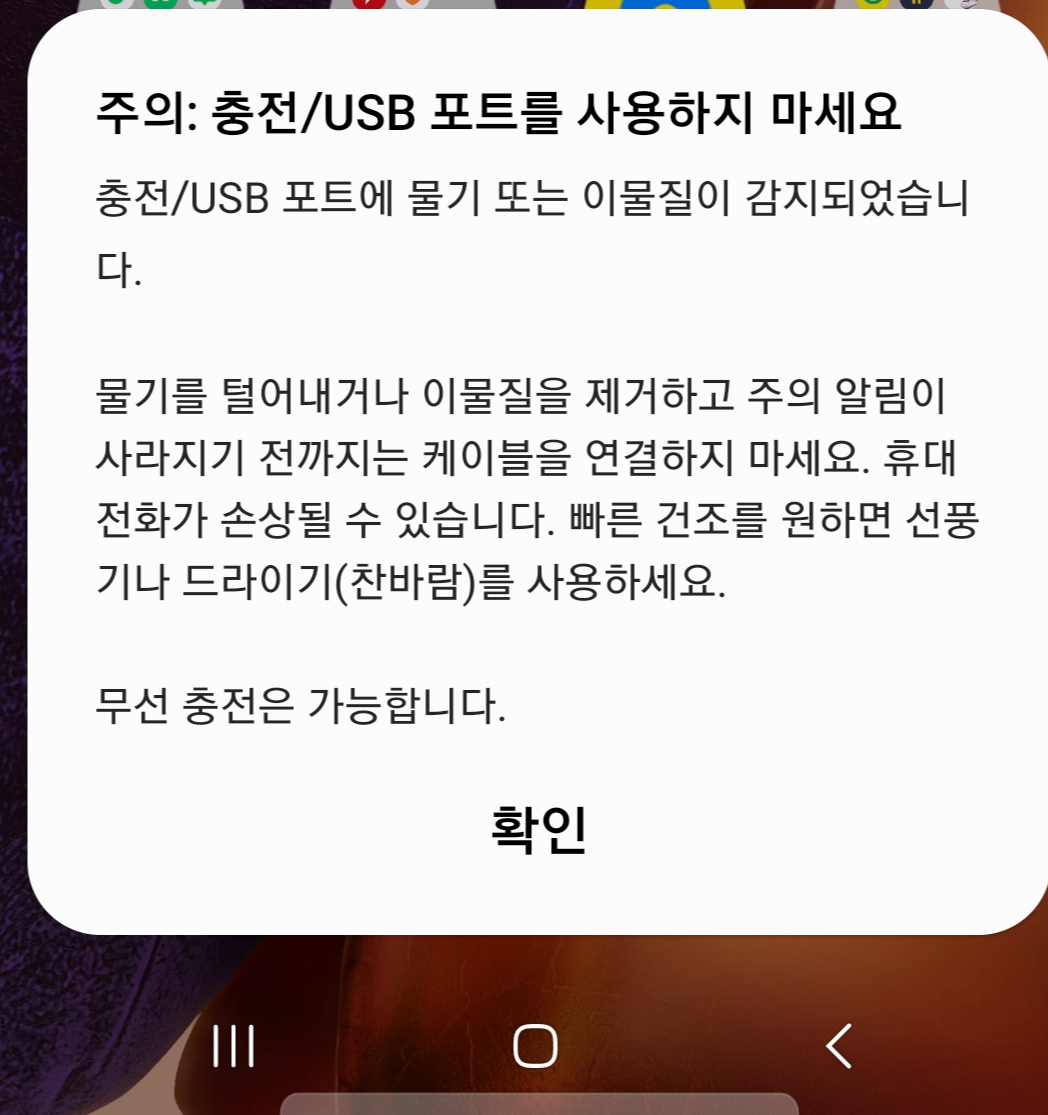 방수팩에서 물이 새서 이런 알림이 뜨더라구요ㅠㅠㅠㅠㅠ
