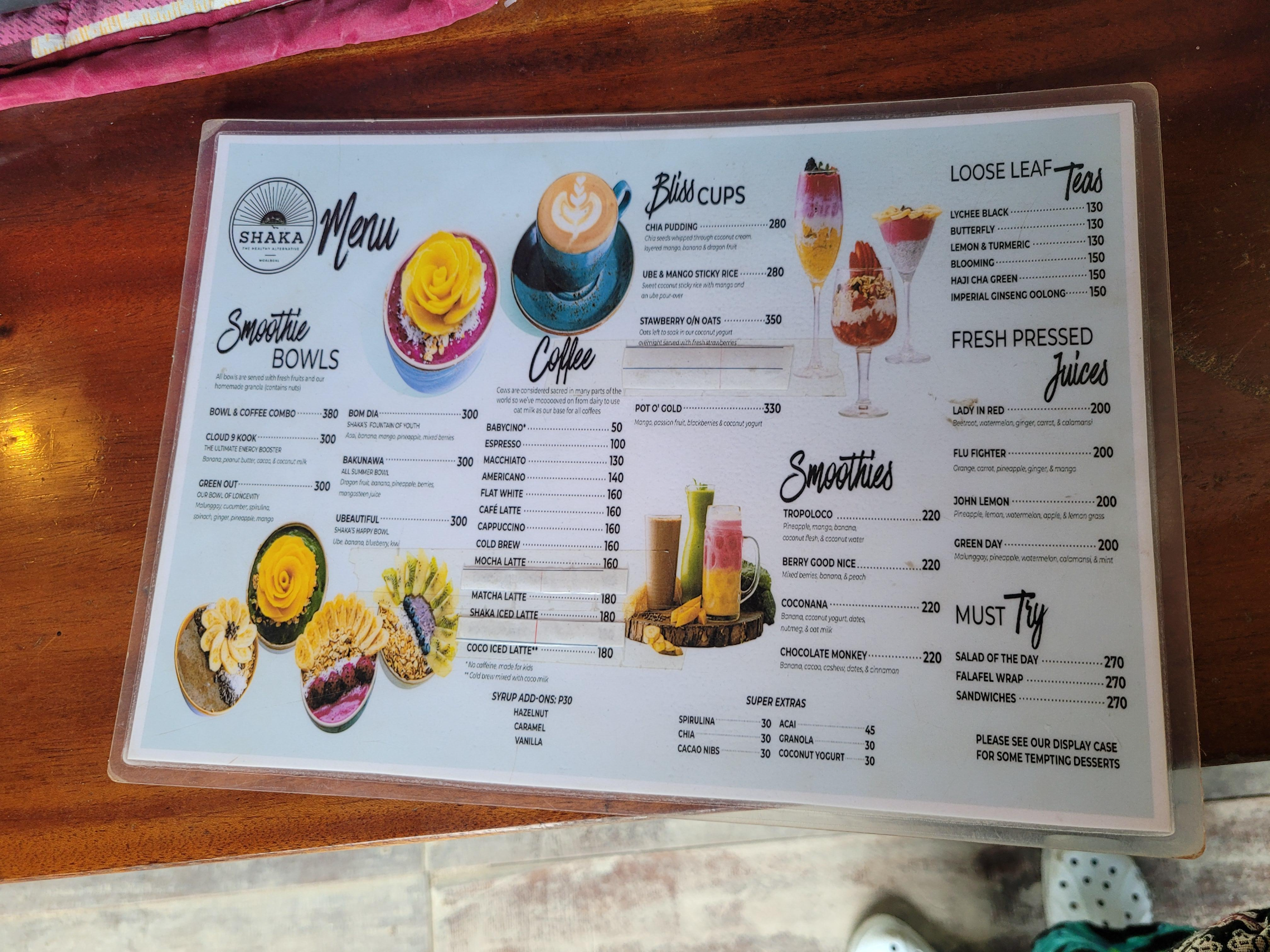 SHAKA CAFE MENU