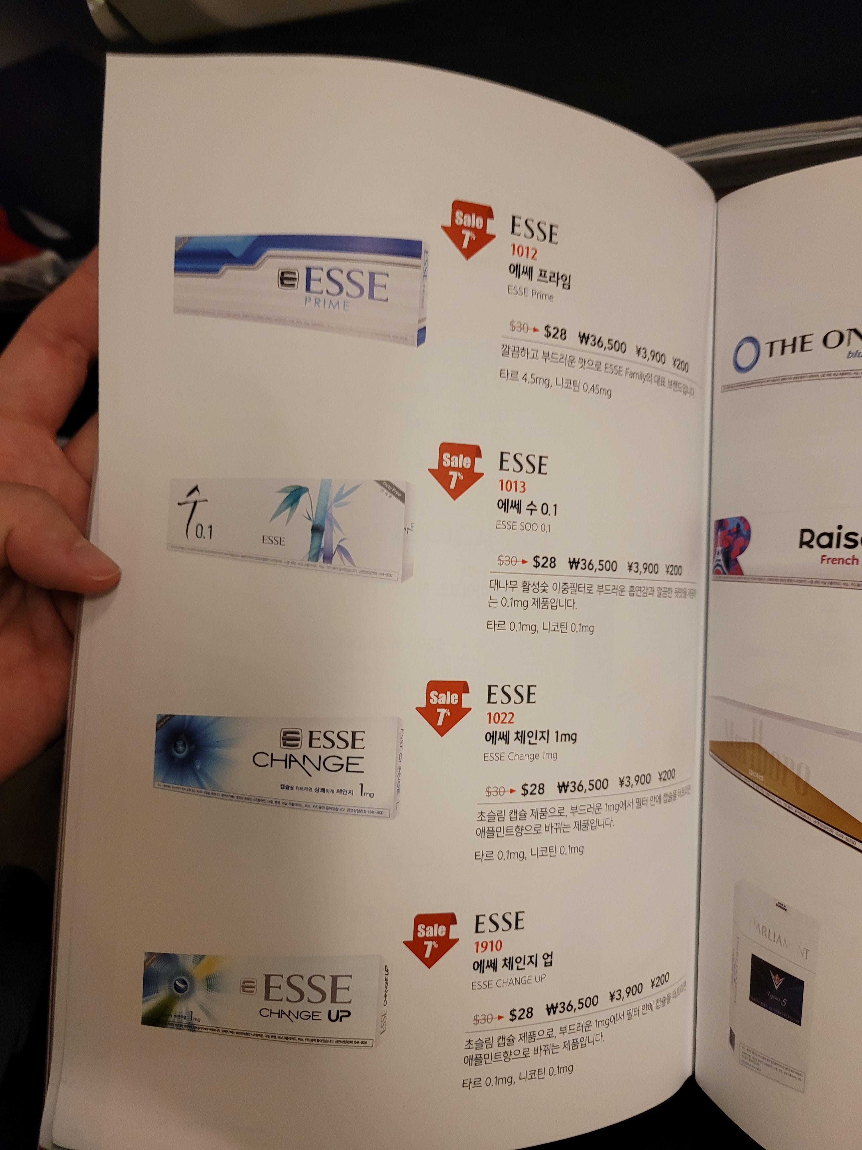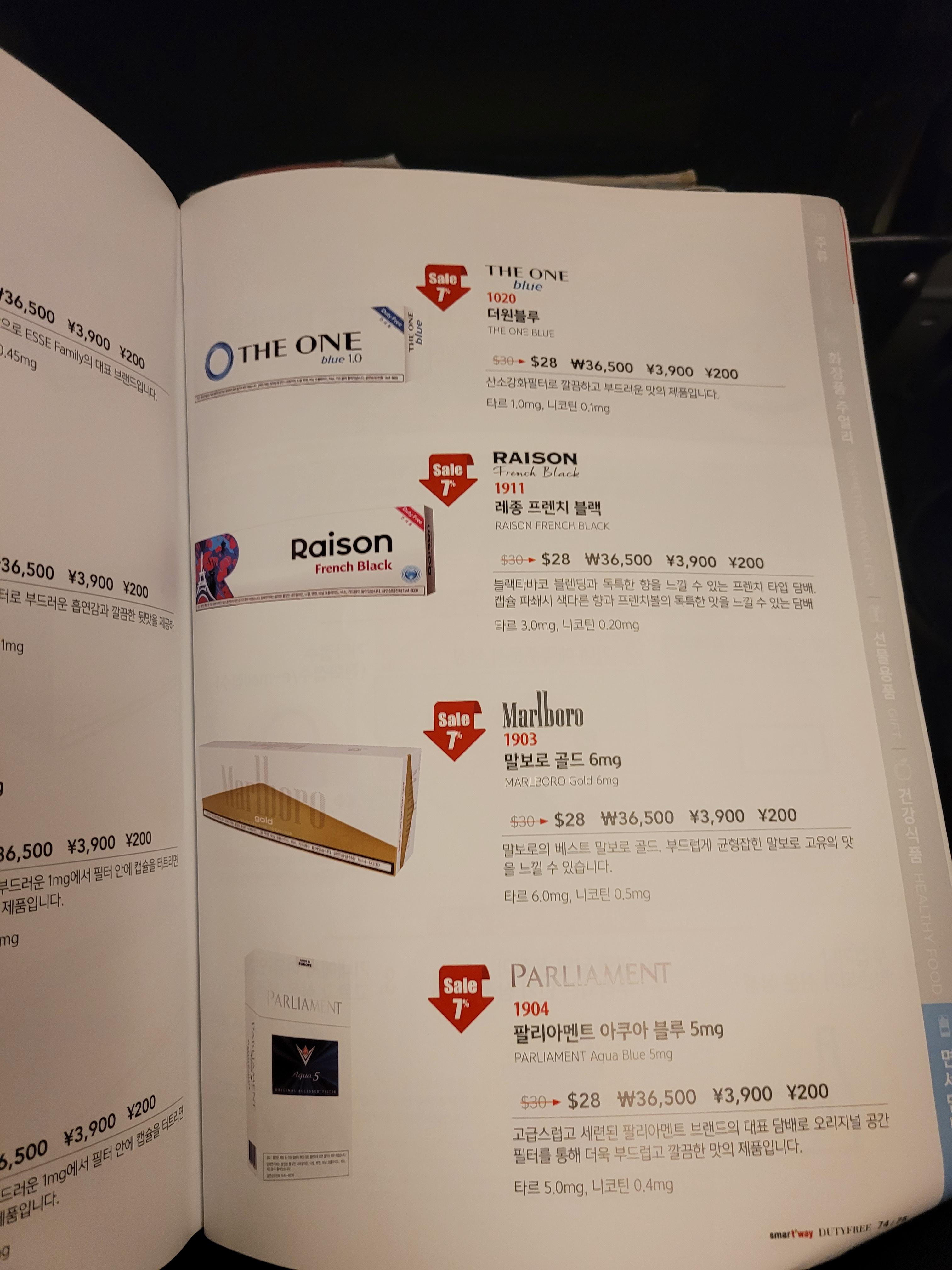 기내 면세점 담배 가격도 매력적입니다!