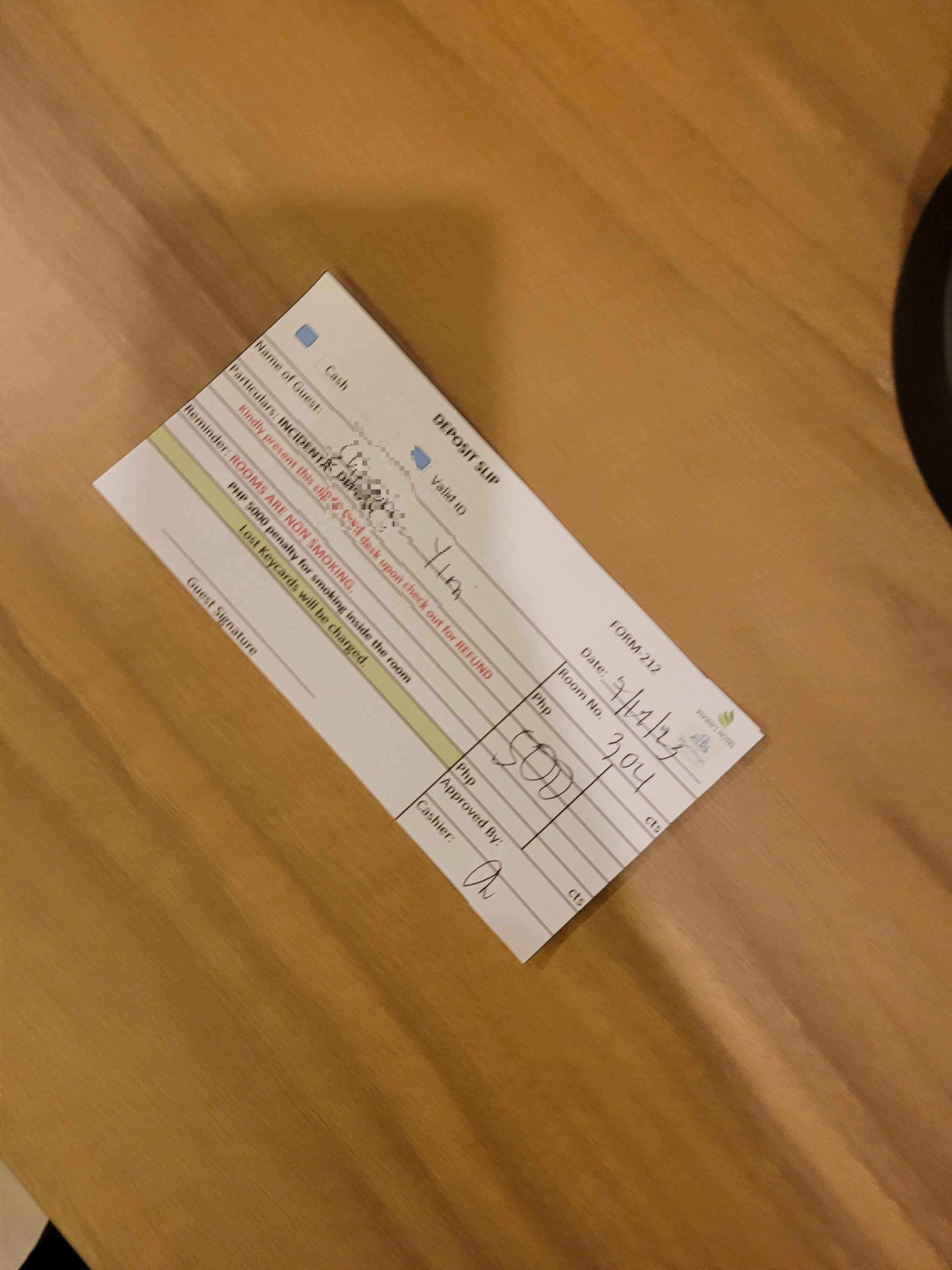 디파짓비용이 500페소있습니다