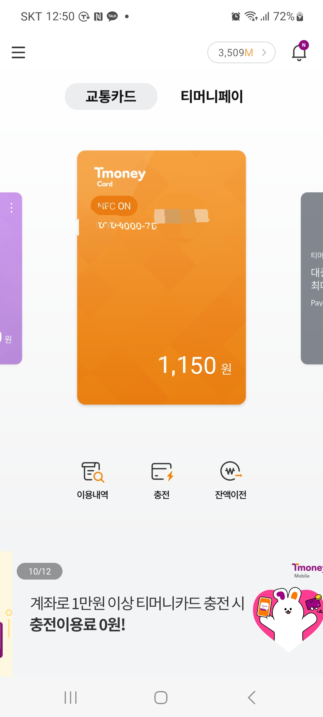 티머니 교통카드 잔액 확인