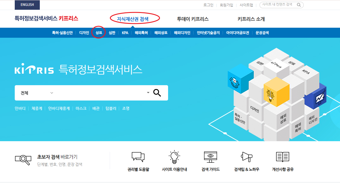 키프리스는 국내 및 해외의 상표권 디자인 등록권 등을 확인 할 수 있는 사이트입니다