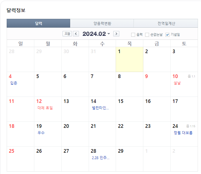 2024년도 일 경우 윤달이 포함되어 366일