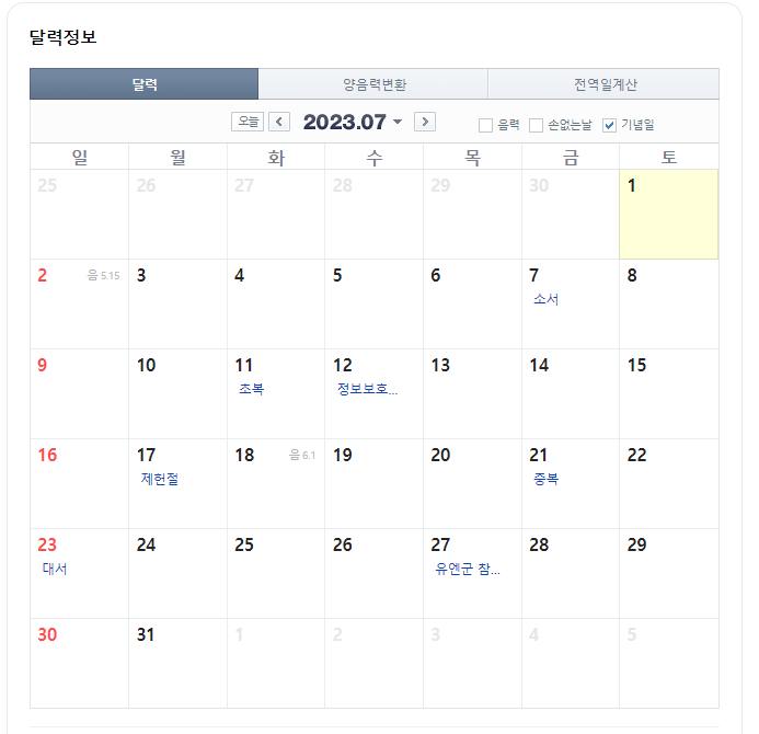 2023년도 일 경우 365일
