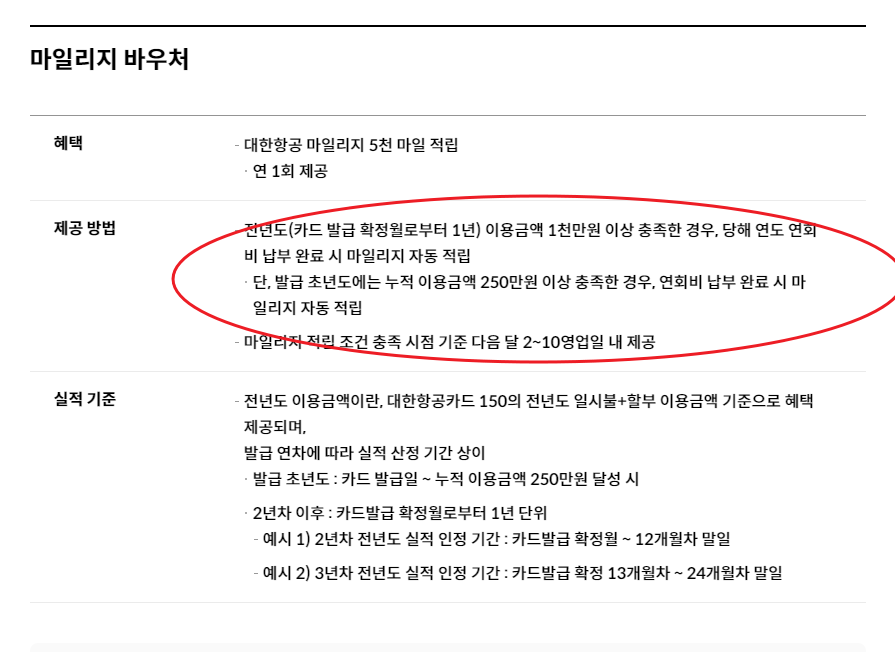 연간 실적은 1천만원 + 당해 연도 연회비 납부시 마일리지가 자동 적립되네요~