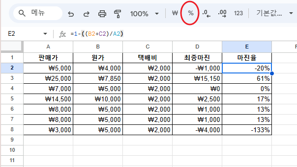 엑셀로 마진율을 계산해보자. (feat. 수식)