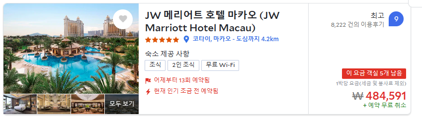 누가 마카오 5성급 호텔 10~20만원대에 갈수있다 그랬는가 ㅠㅠ