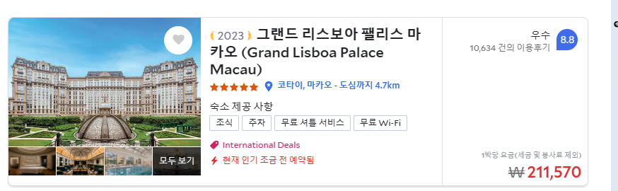 2024년 7월 그랜드 리스보아 팰리스 마카오 호텔 가격