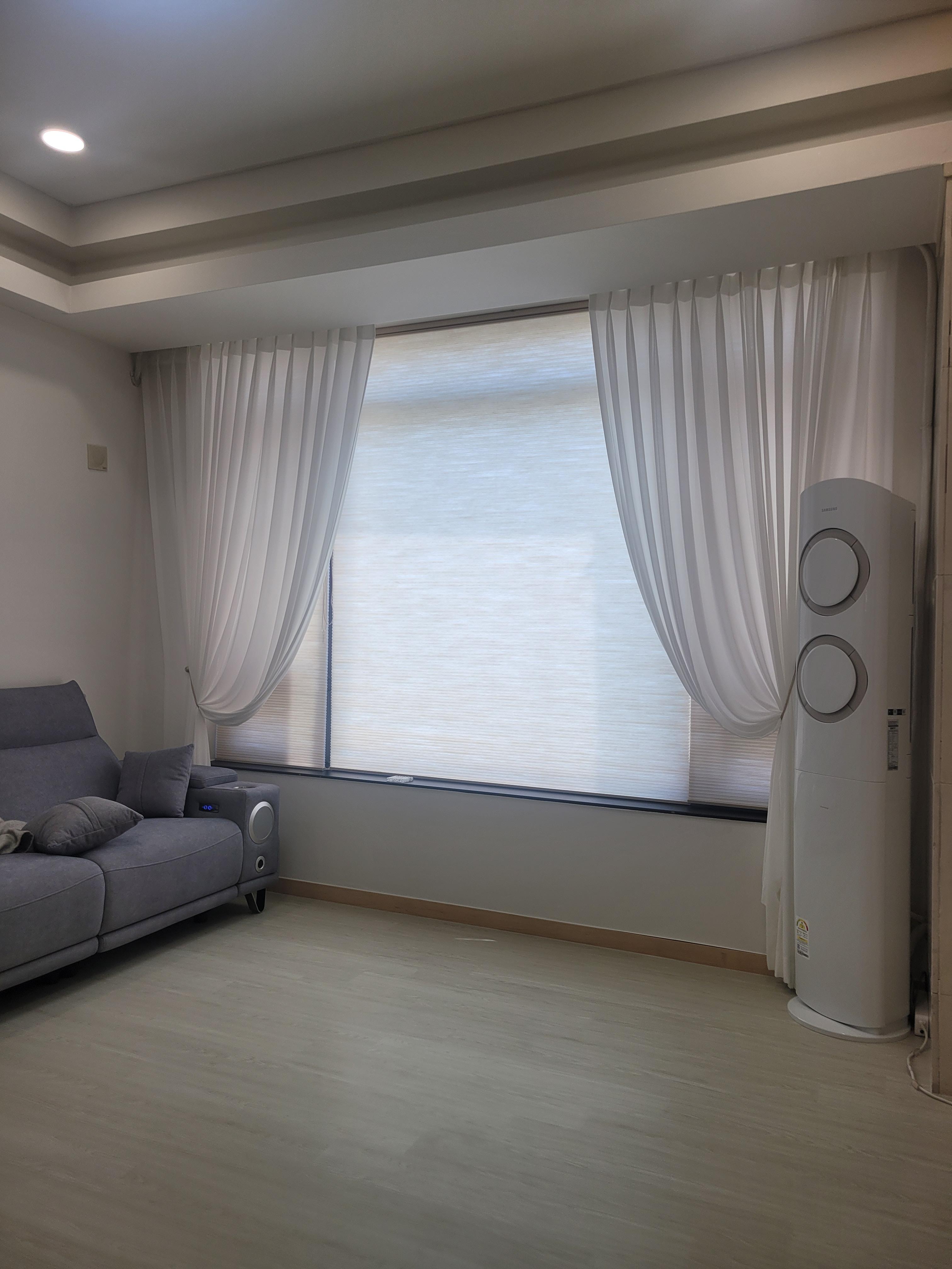 거실은 차랄라커튼+허니콤블라인드