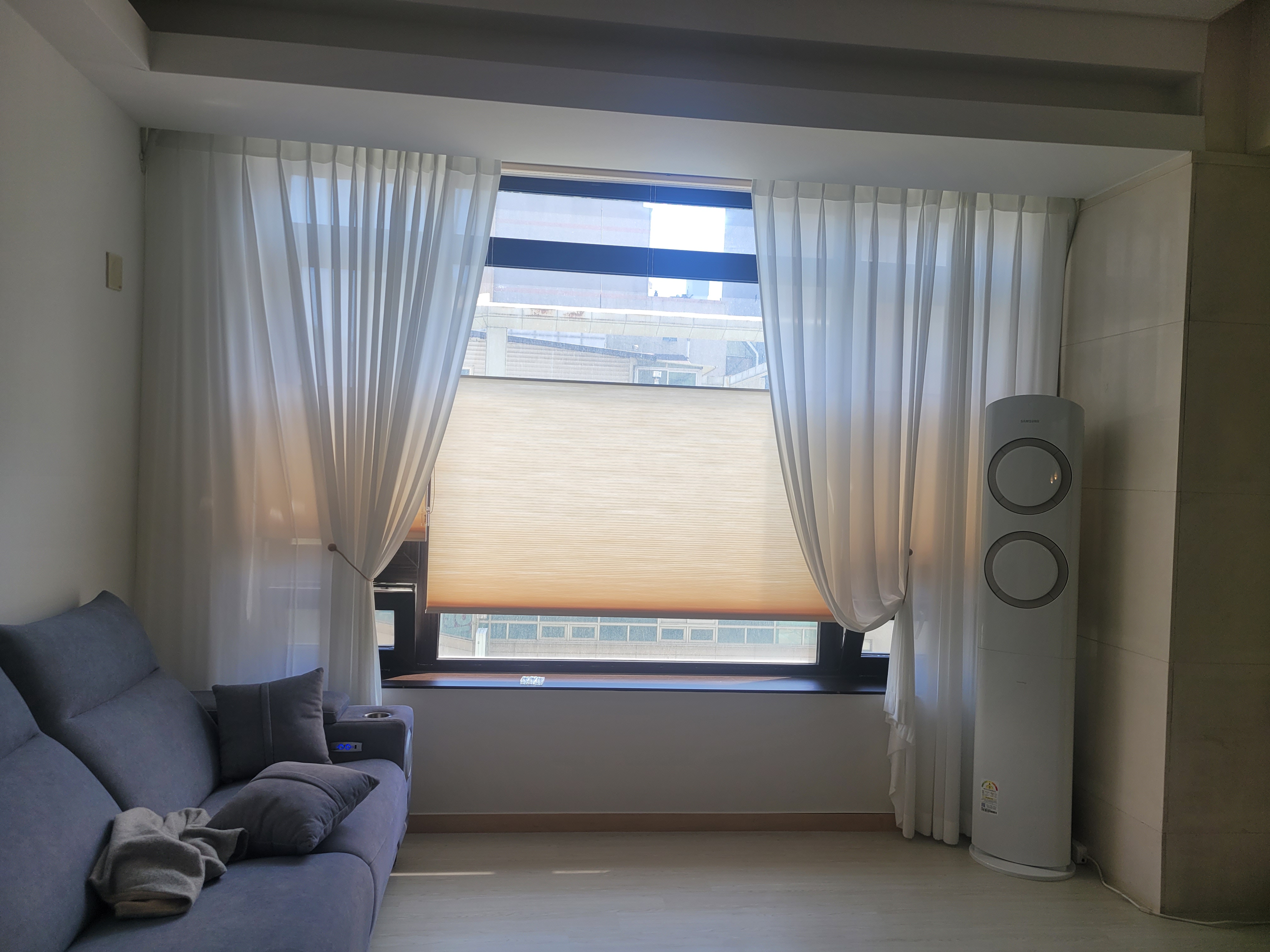 저희가 선택한 것은 허니콤블라인드 + 차르르 아이보리 커튼 입니다.