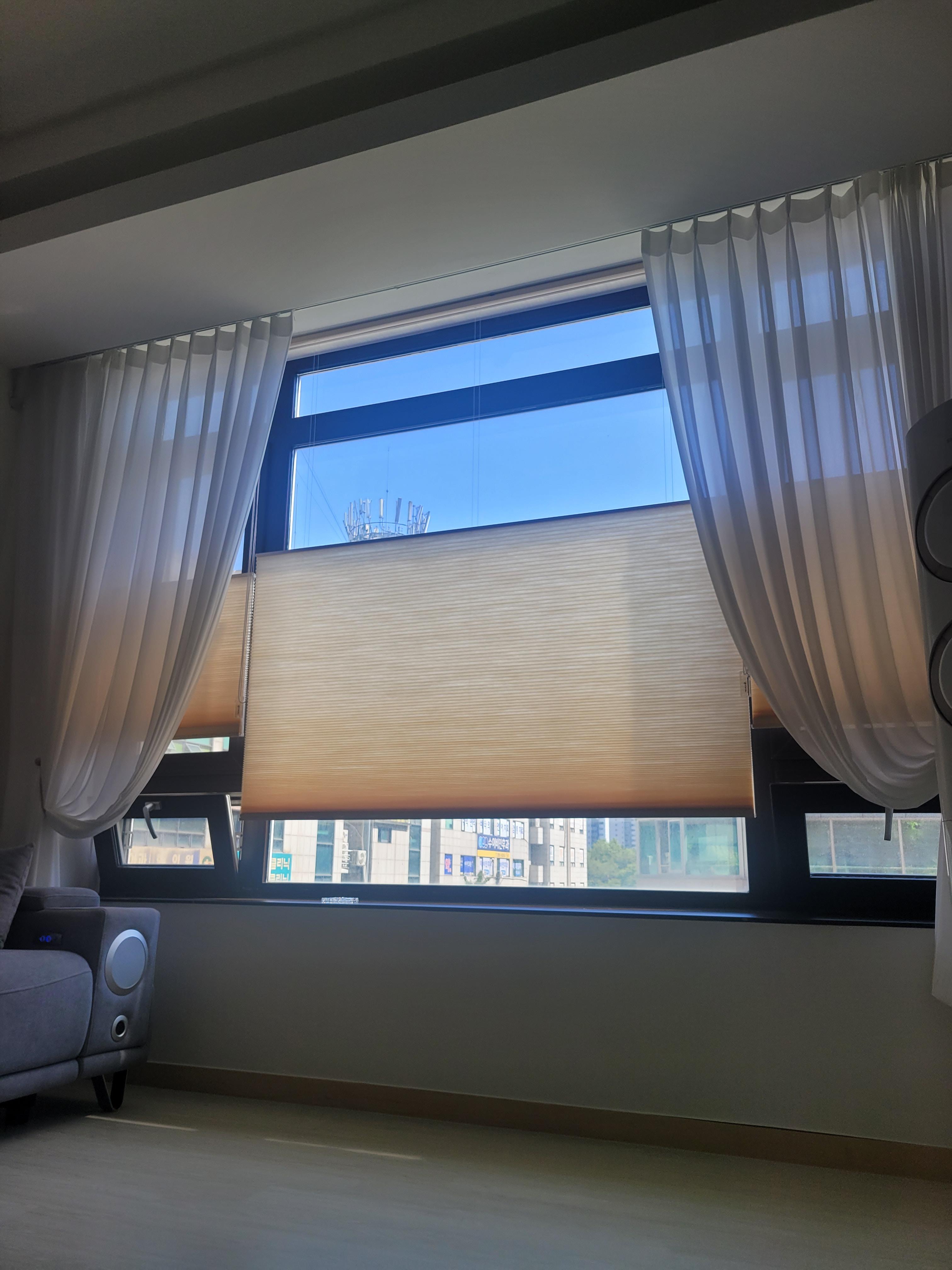 이제는 허니콤블라인드와 차랄라 커튼이 보인다