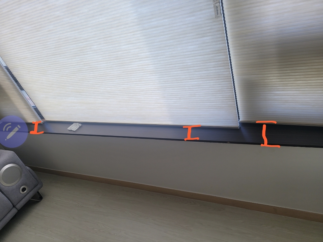 1. 허니콤블라인드 하단부 바닥이 ㅡ <-일자로 떨어지지 않는다
