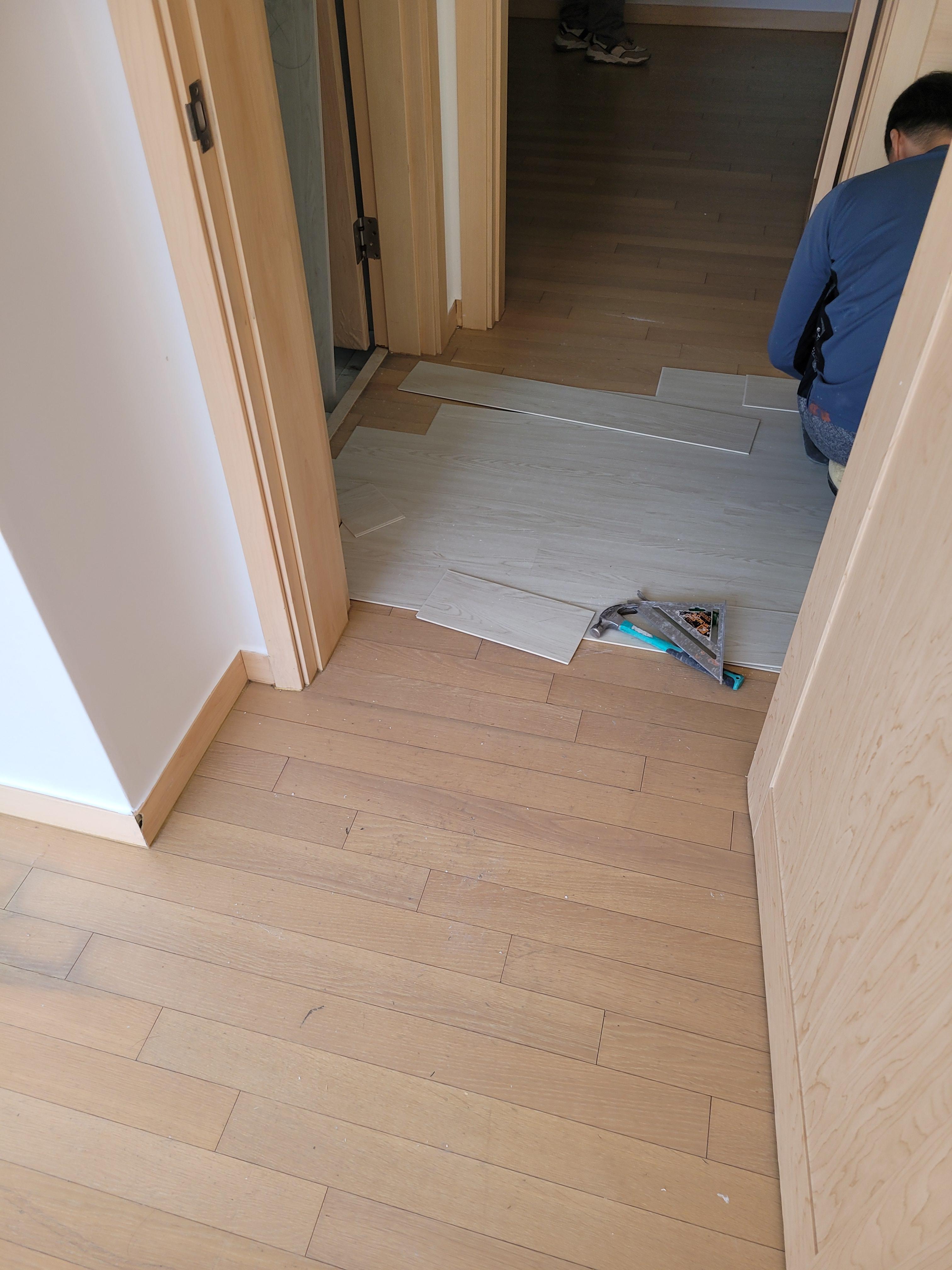 이렇게 기존 마루바닥위에다가 시공을 시작한다