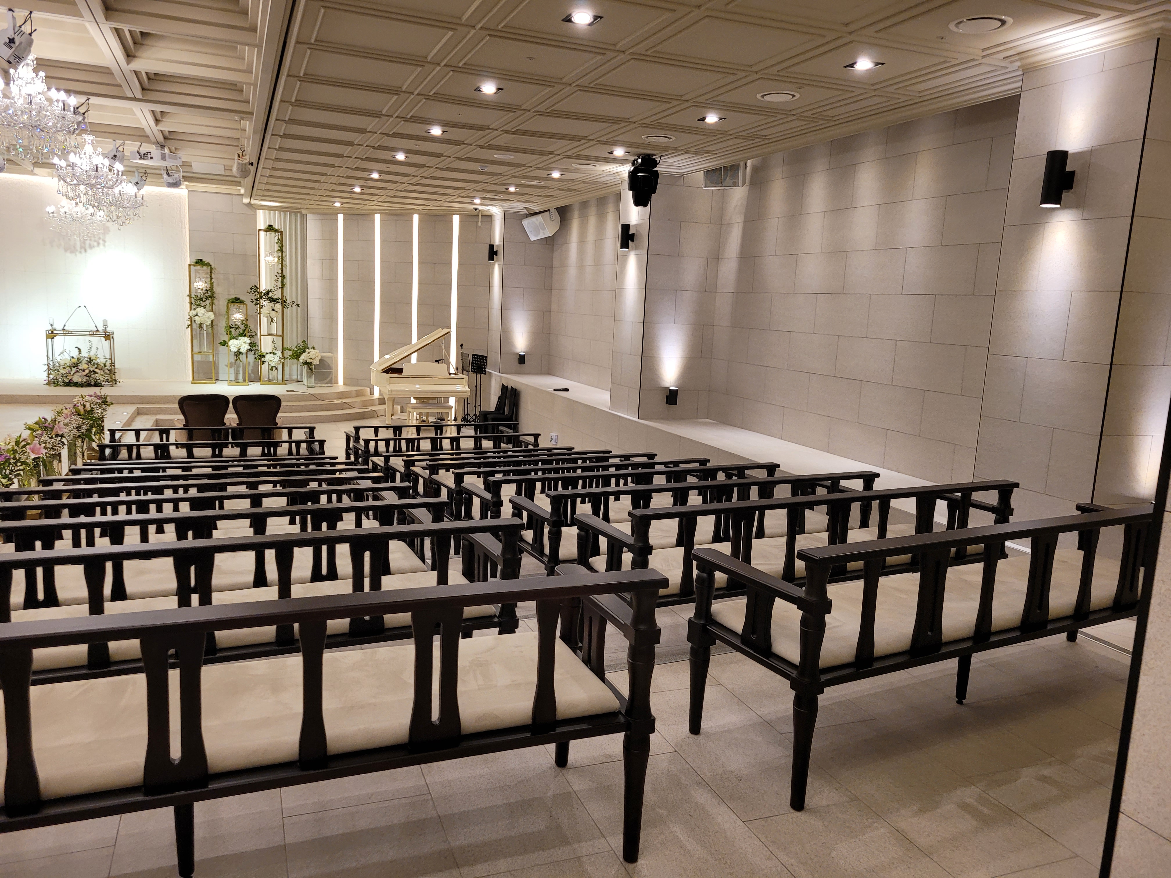 계단식으로 하객석에 단차가 있어서 사각지대없이 어느 자리든 잘 보인다.