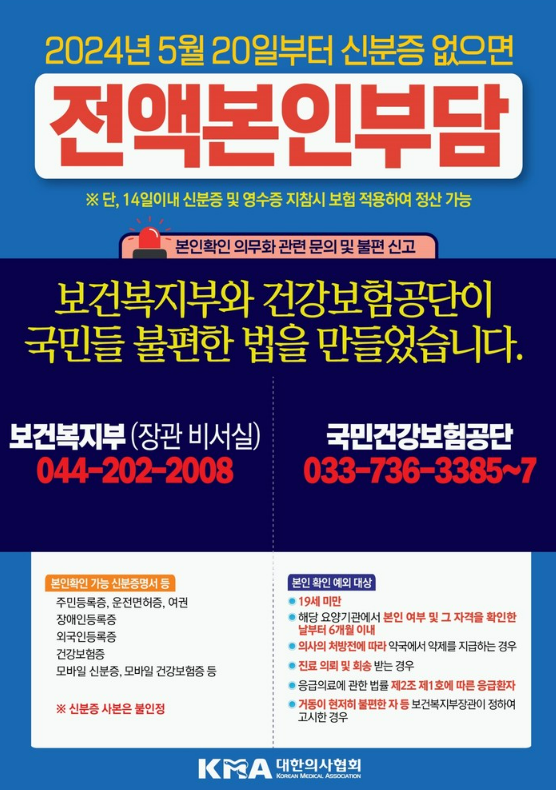 2024년 5월 20일부터 신분증 없으면 전액 본인 부담이 됩니다.