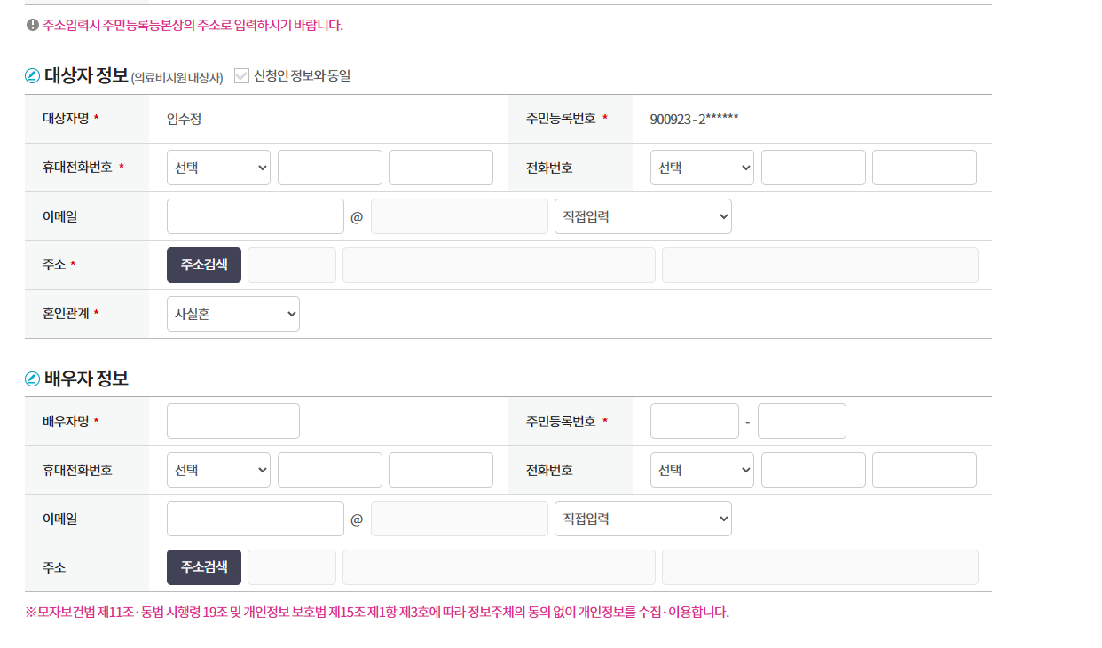 (사실혼) 임신 사전건강관리 지원 의료비를 신청해보았습니다
