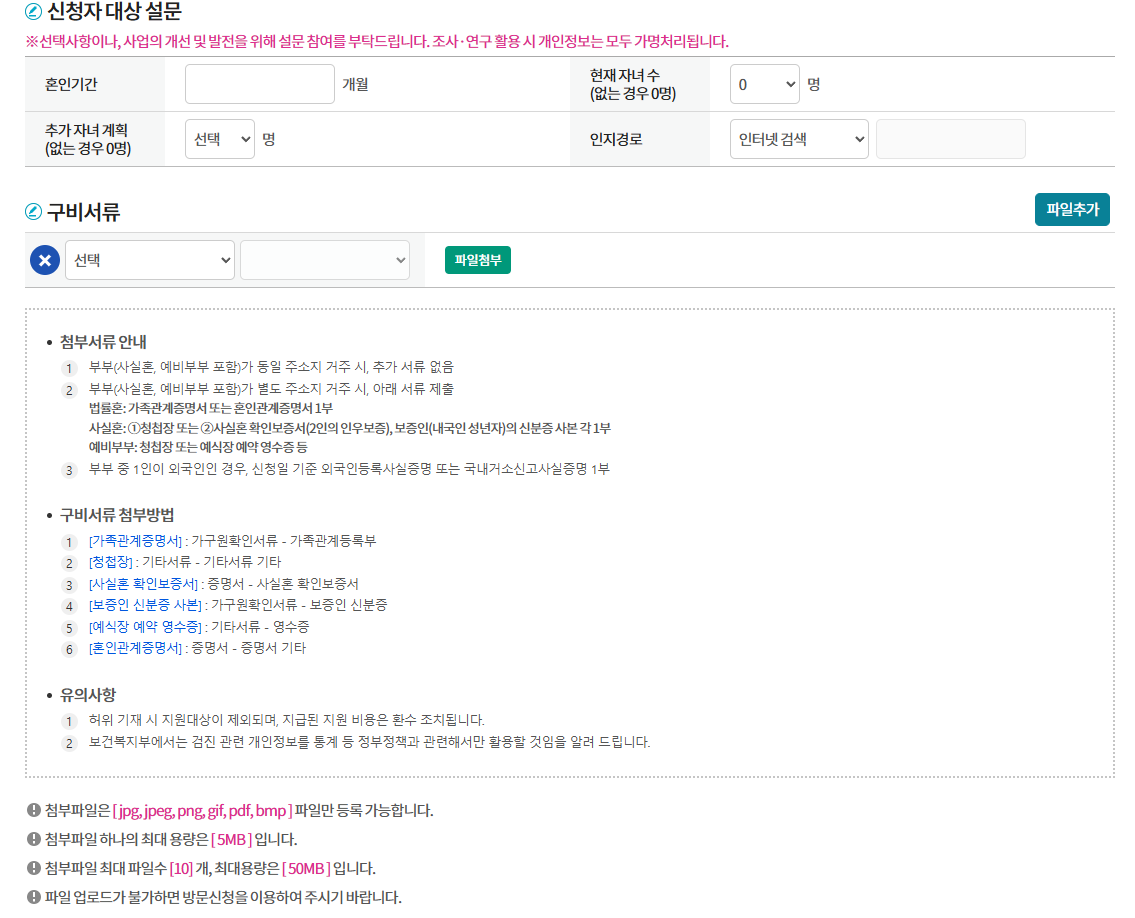 2)부부(사실혼, 예비부부포함)가 별도 주소지에 거주하는 경우 아래 해당하는 서류를 제출합니다