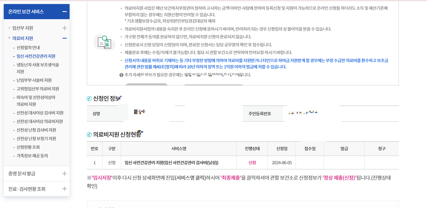 2세를 계획하기 위하여, 임신 사전건강관리 지원 의료비를 신청해보겠습니다!