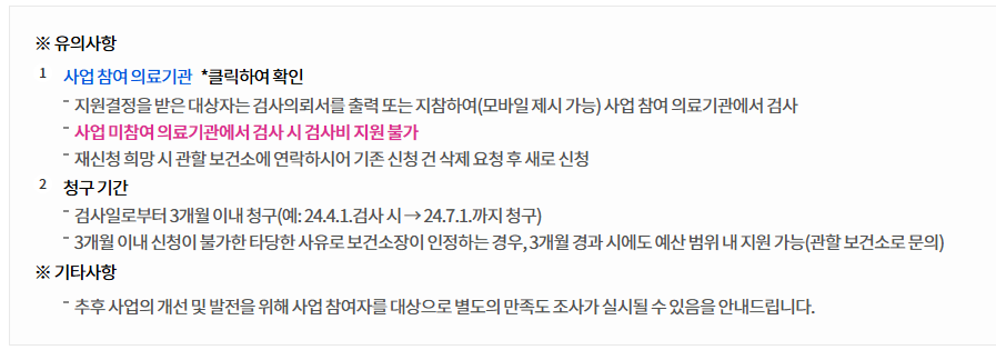 사업 미참여 의료기관에서 검사시에는 검사비지원이 불가합니다