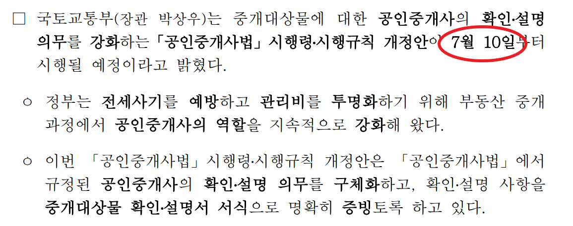 공인중개사의 설명 의무 강화에 대해서(7월10일부터 시행)