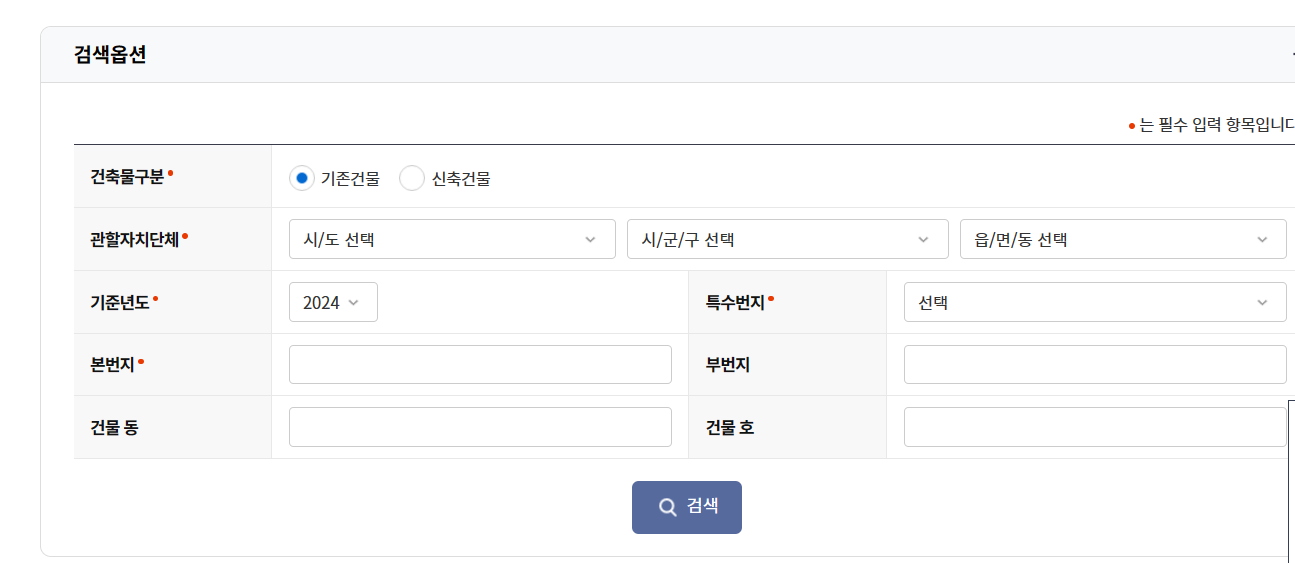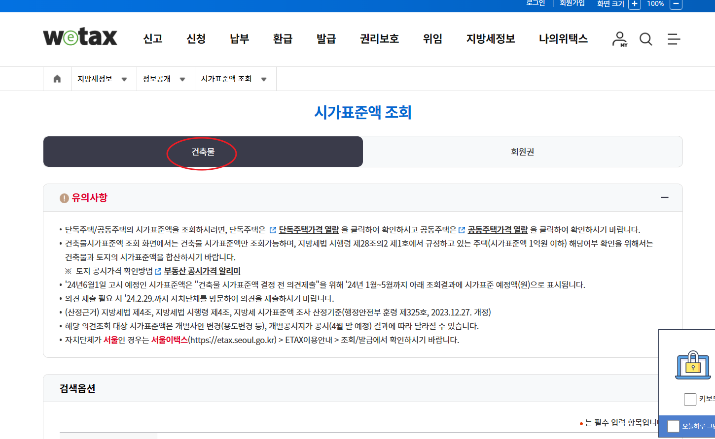 지방세정보->시가표준액 조회