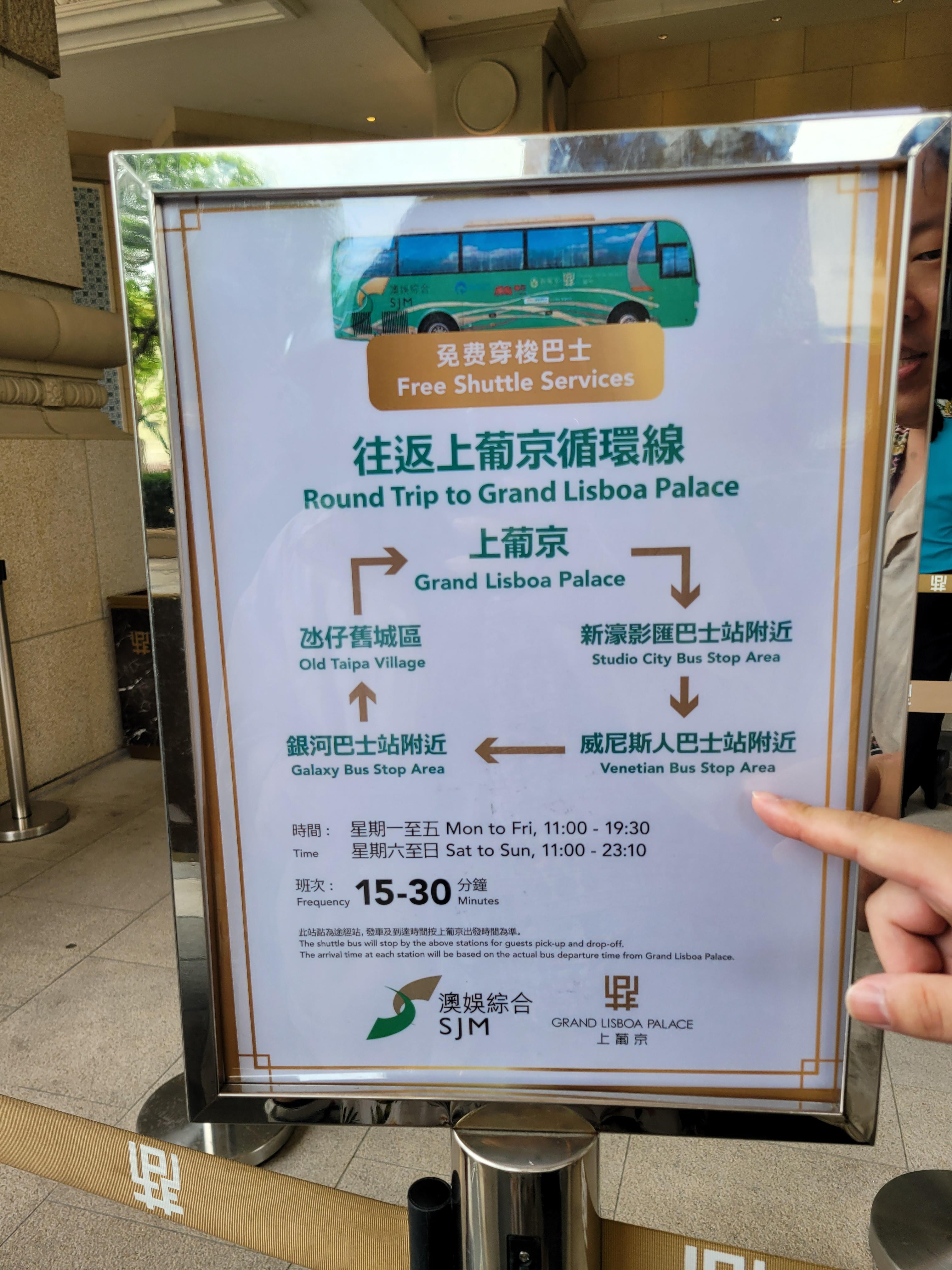 호텔 순환 셔틀버스 정보 (round trip to grand lisboa palace)