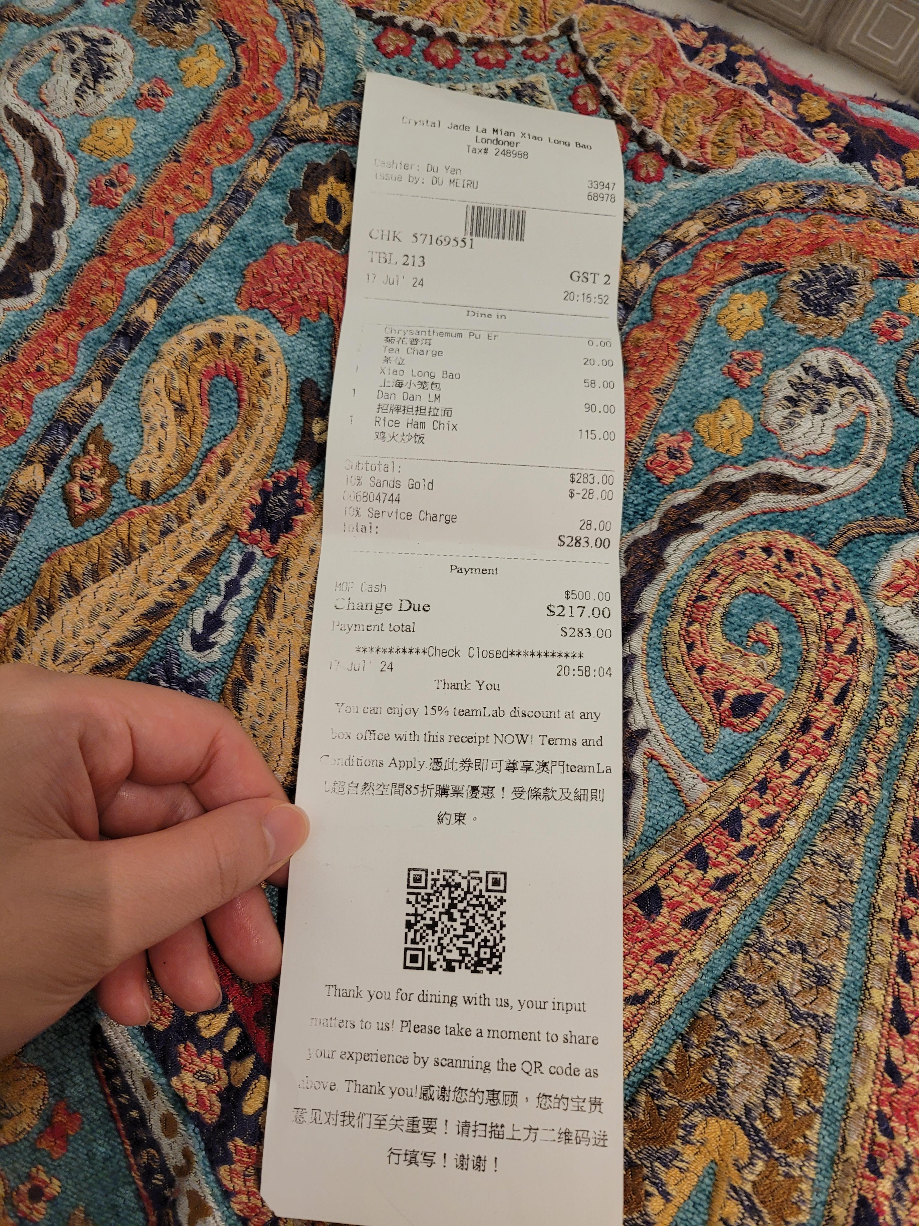 총 283 MOP (약 48,400원정도)
