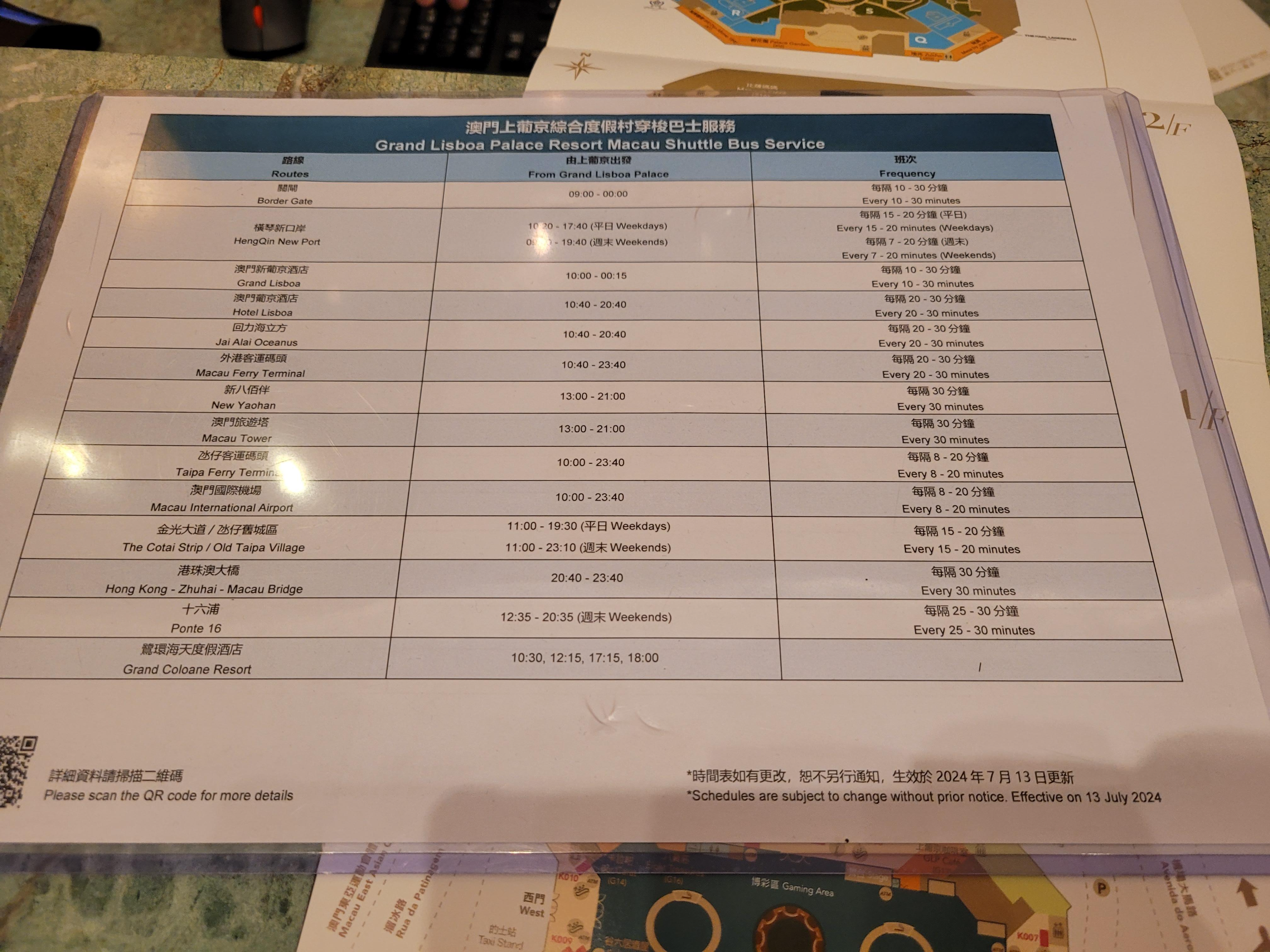 마카오 그랜드 리스보아 팰리스 호텔 셔틀버스시간표