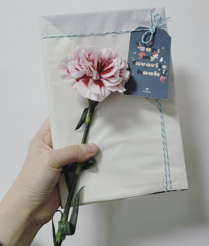 책과 관련된 내용의 엽서와 예쁜 포장이 참 기분좋은 선물이에요!
