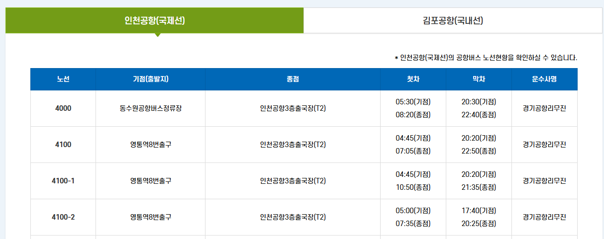 수원 영통역(망포역) <-> 인천공항 공항버스 소요시간 : 약2시간