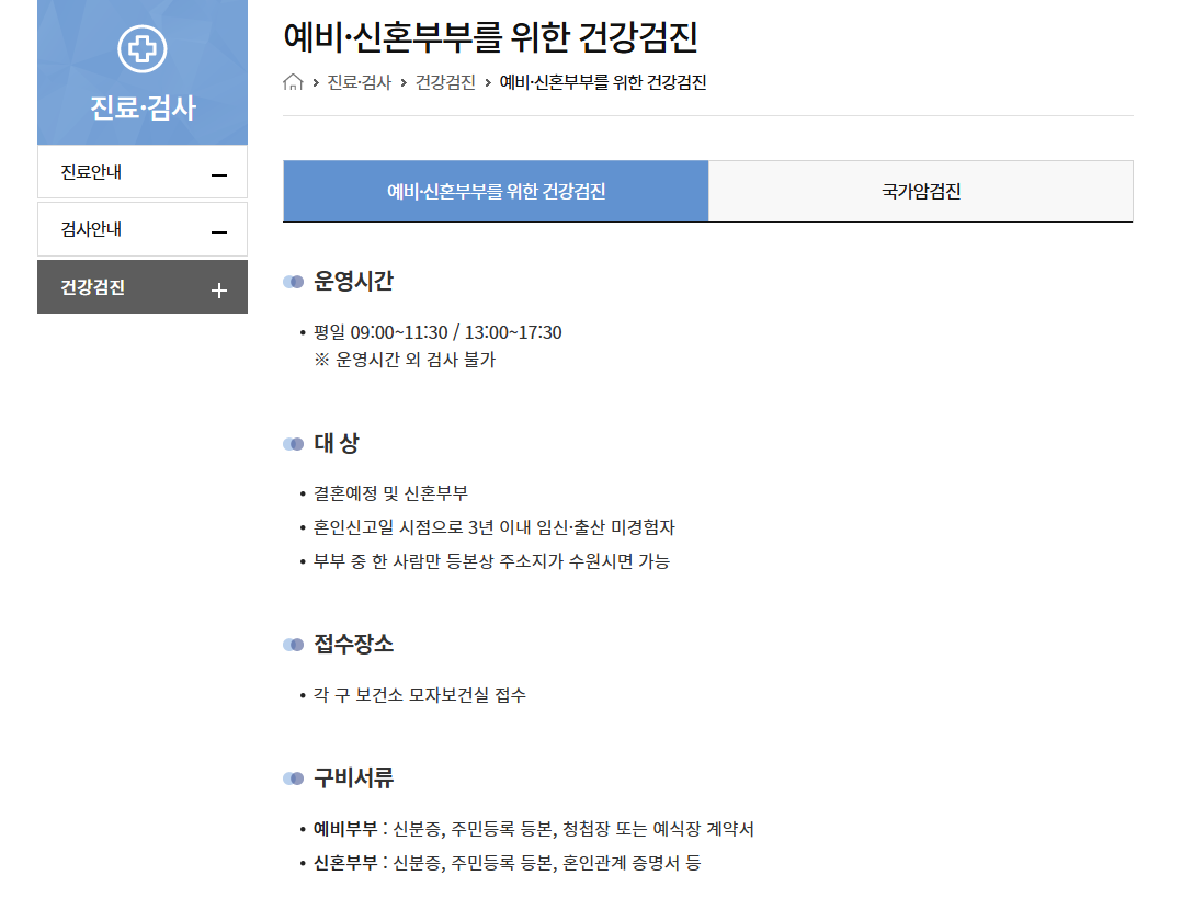 임신 전에 검사를 받아두면 좋을 것 같아 알아보던 중 보건소에서 무료 임신전검사를 한다는 정보를 알게되었어요!