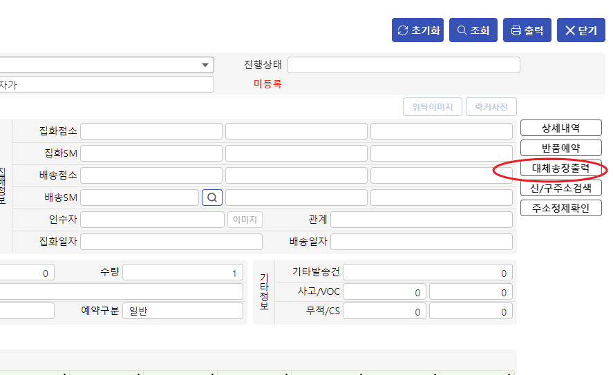 오른쪽 중간쯤 "대체송장출력"을 클릭한다.