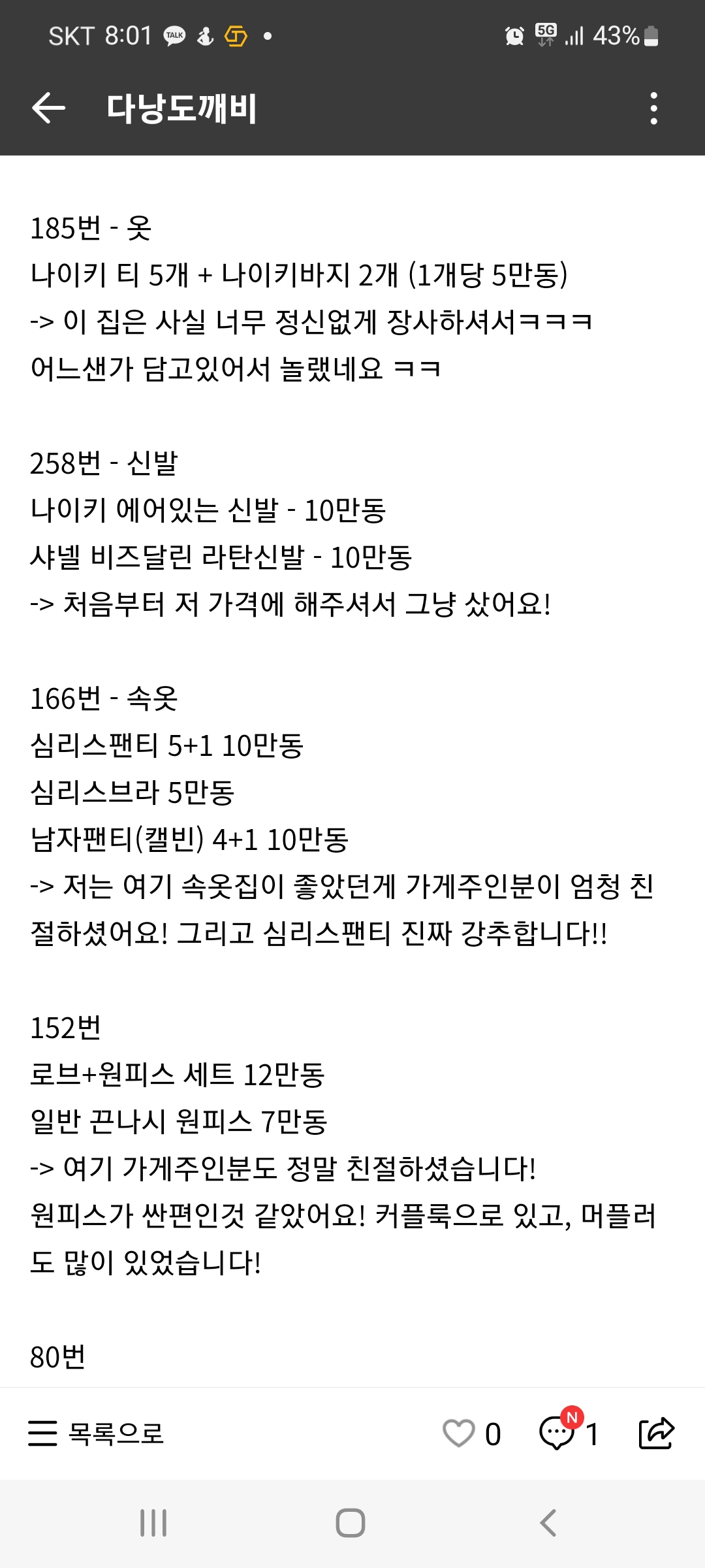 다낭도깨비에서 185번 상점을 미리 보고갔는데