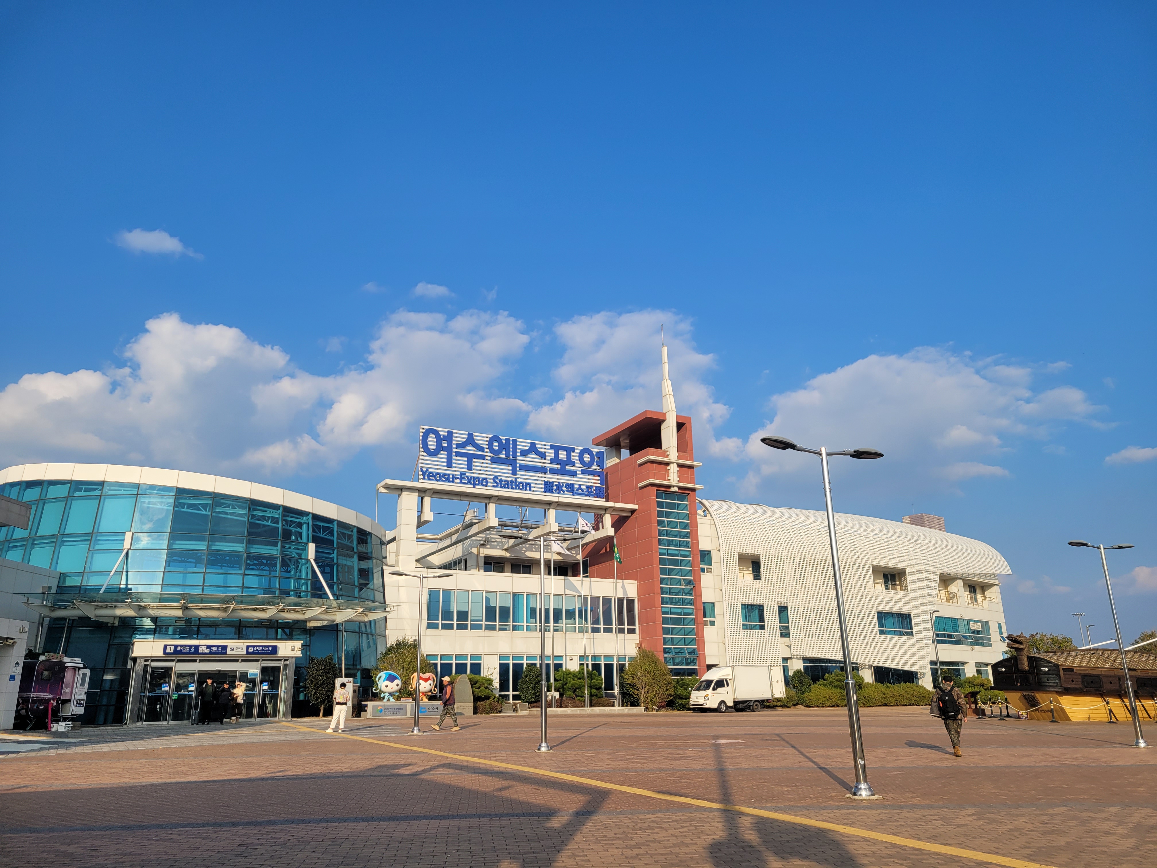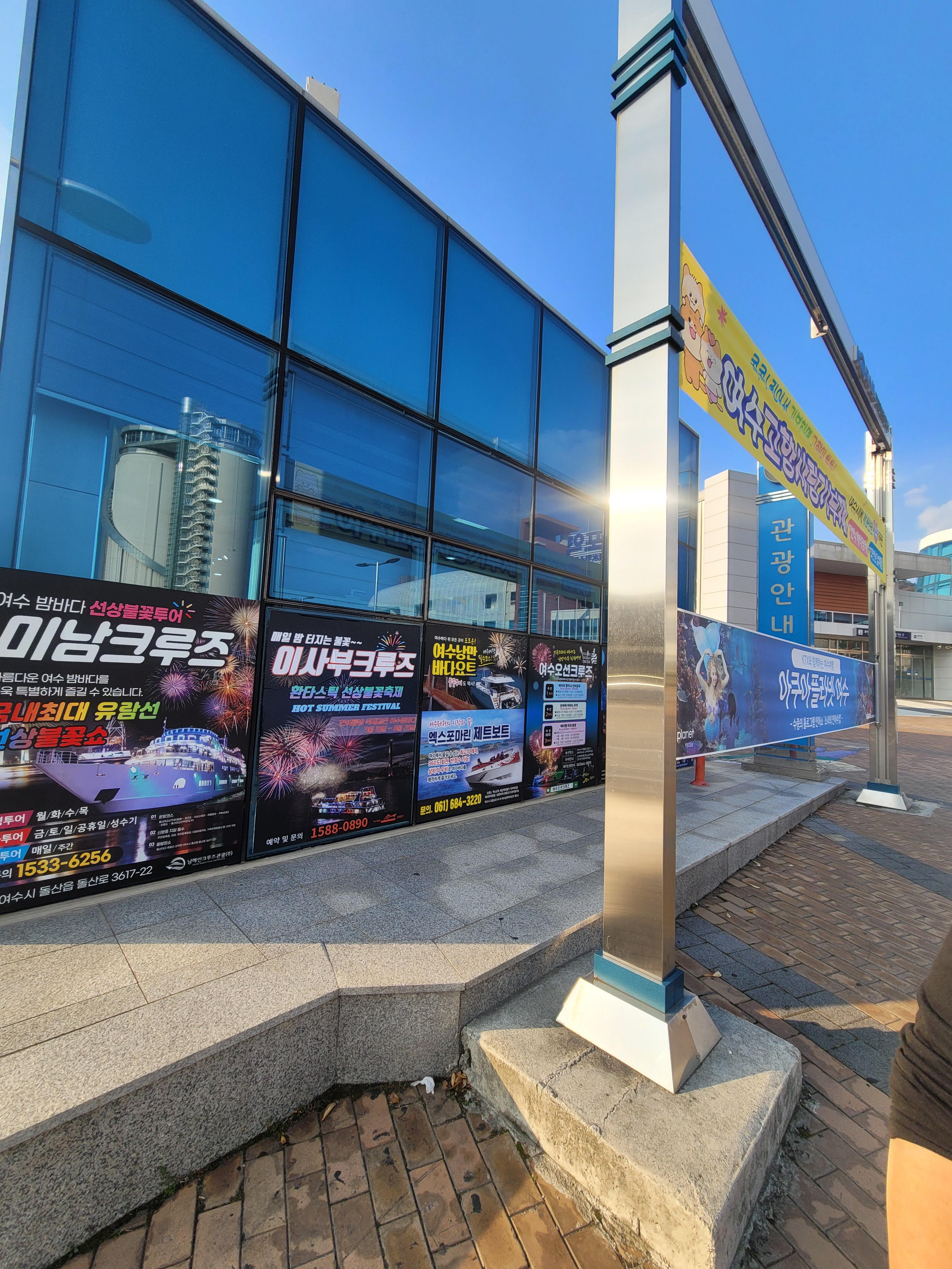 여수엑스포역을 나와서 쭉 걸으면, 택시승강장과 관광안내소 사이 공간에서 대기하면 된다고 하시네요