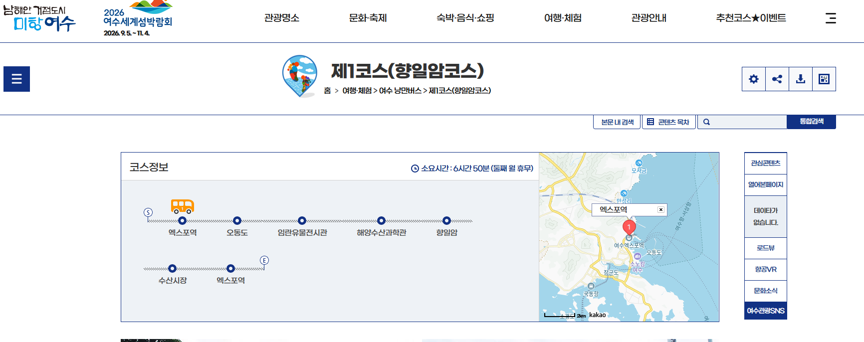 이 코스는 여수의 대표 명소를 편안하게 둘러볼 수 있는 시티투어 노선으로,