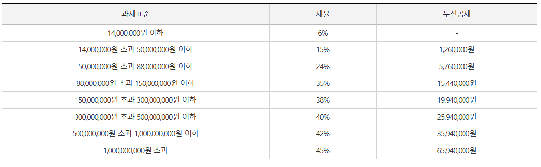 세금 = (과세표준 × 세율) - 누진공제
