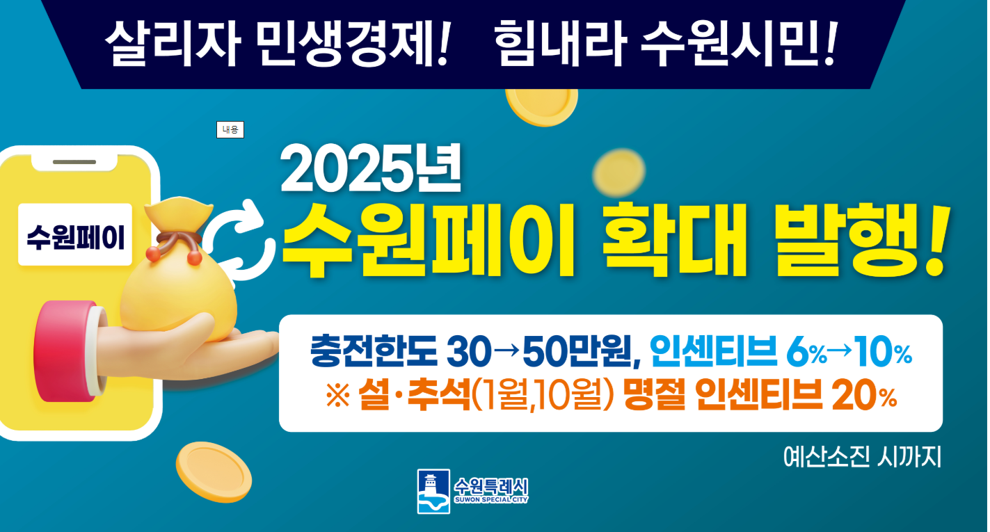 수원페이 20% 인센티브지급 ! 수원지역화폐 25년1월24일부터