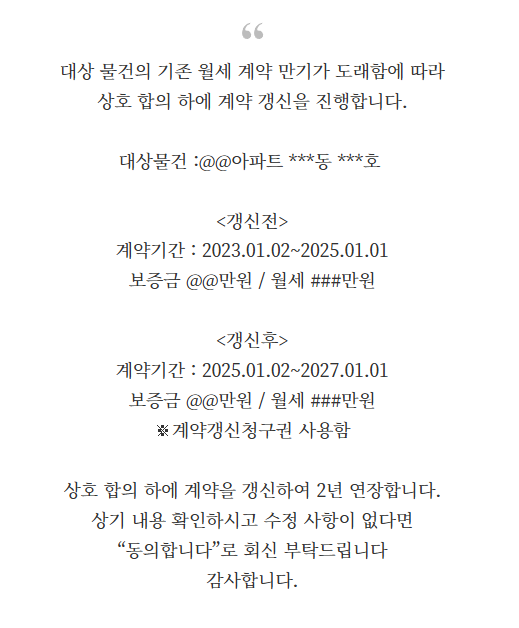 계약갱신청구권을 사용한다면 꼭 그 내용을 기재해주는 것이 좋습니다.