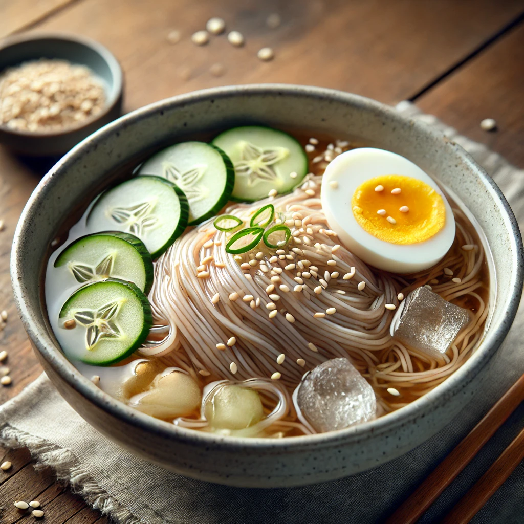 메밀면 자체는 GI가 낮은 편이지만, 냉모밀 국물에 들어가는 설탕이 문제예요. 차가운 국수라 포만감이 낮아 과식하기 쉽고, 혈당 스파이크를 유발할 수 있어요.