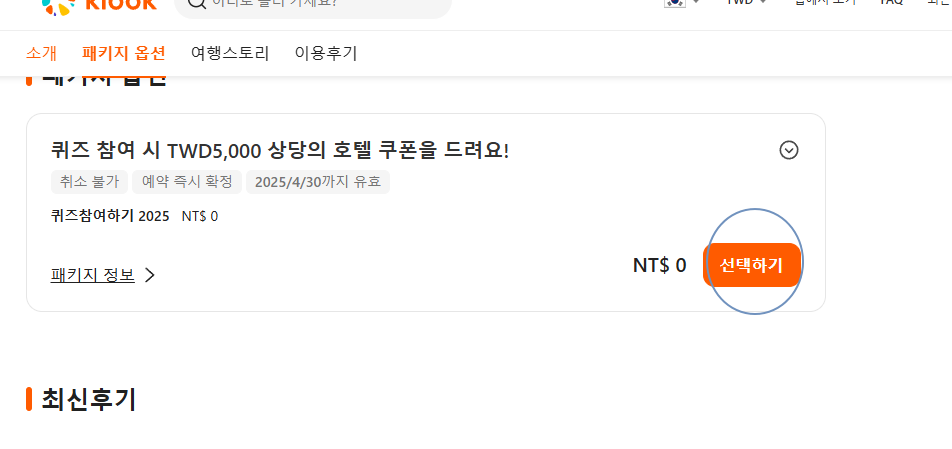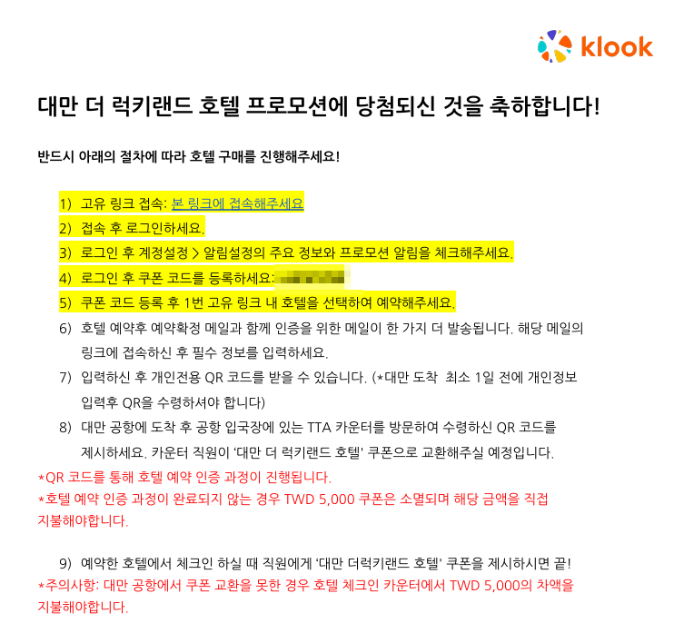 클룩 대만 숙박지원금(TWD 5,000)약 22만원 지원받고 예약하는 방법