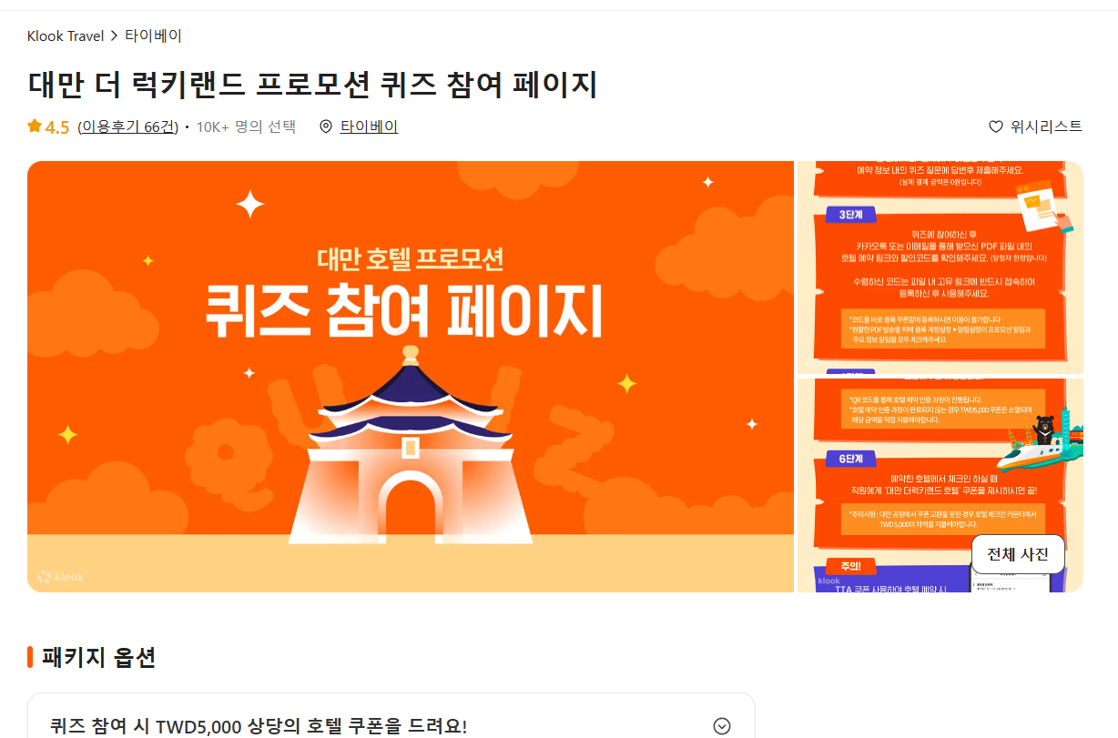 대만 더 럭키랜드 프로모션 퀴즈 참여 페이지 - 클룩 Klook 한국