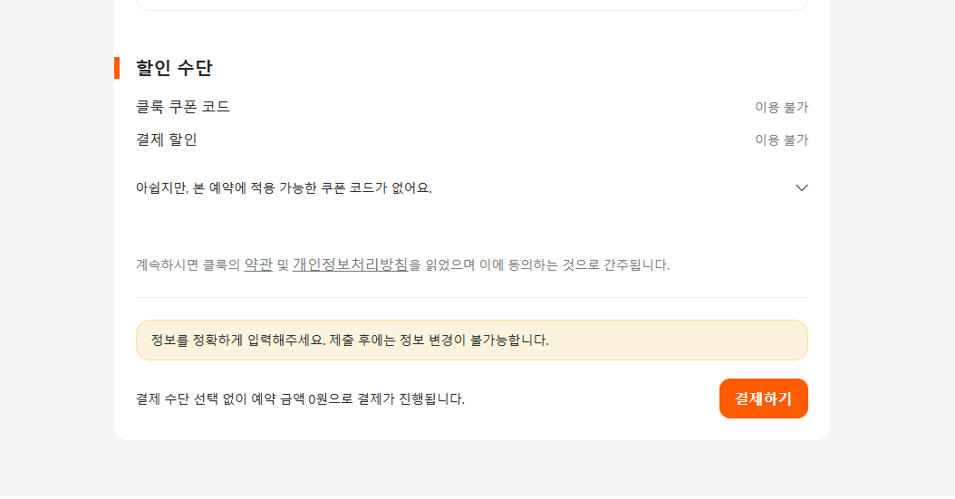 간혹 이부분까지 다 안하시고 예약만 하신 분들은 ㅠㅠ 지못미....
