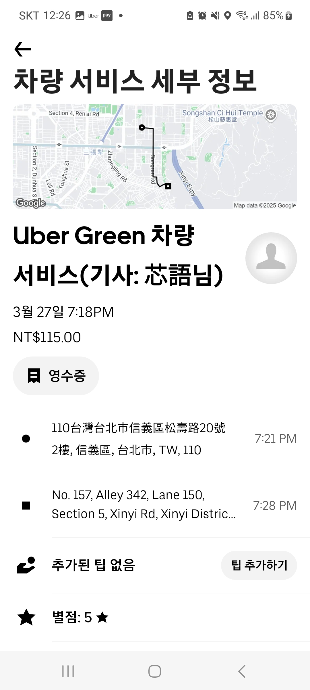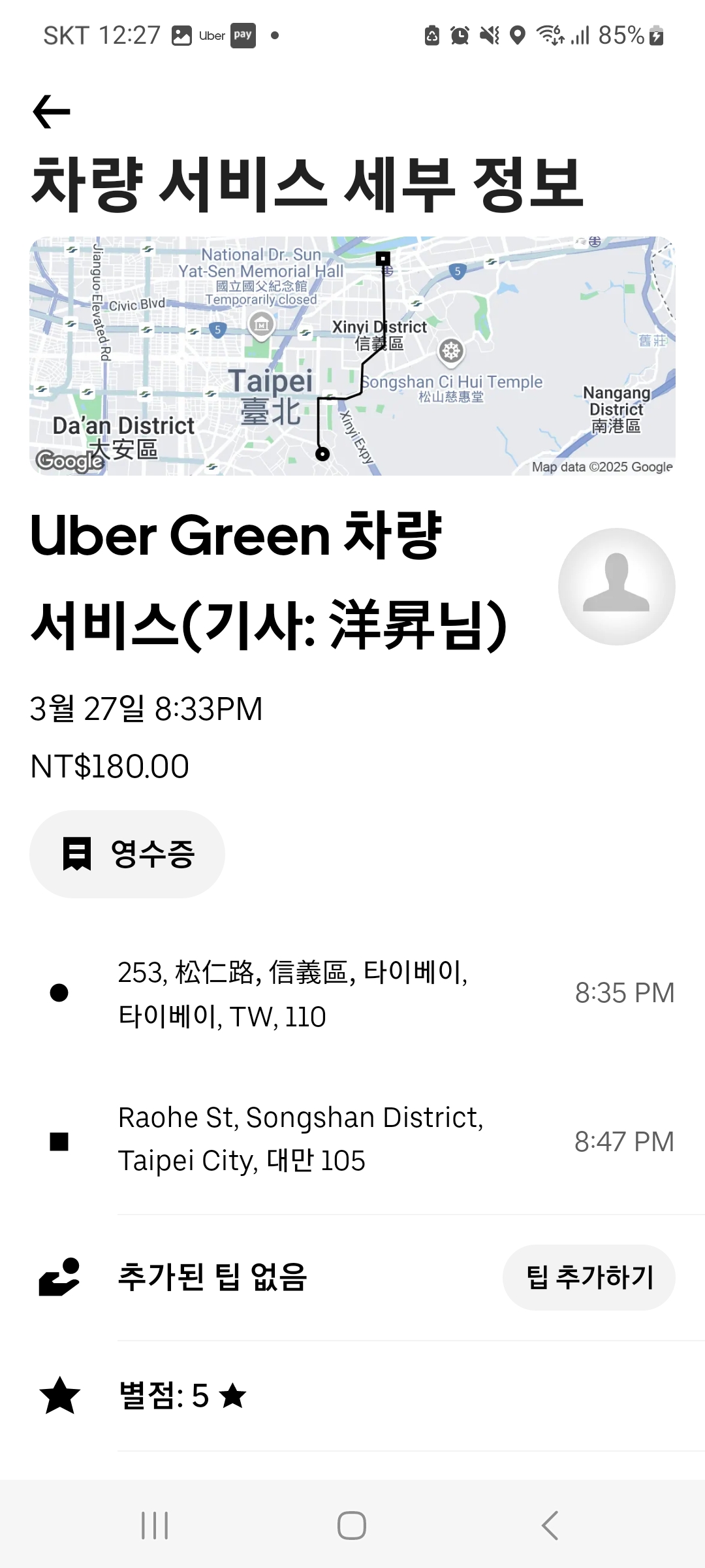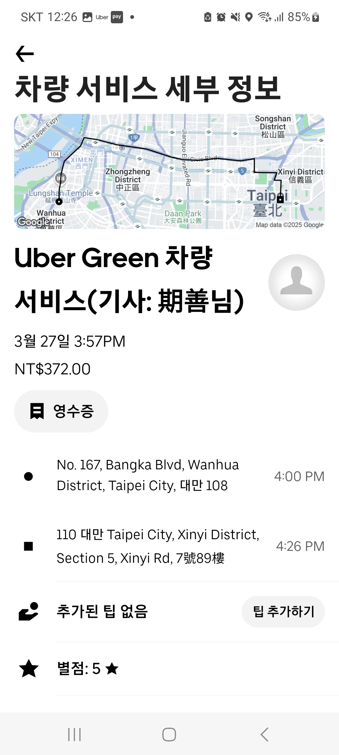 🛣️ 제가 직접 타본 타이페이 우버 요금 정리