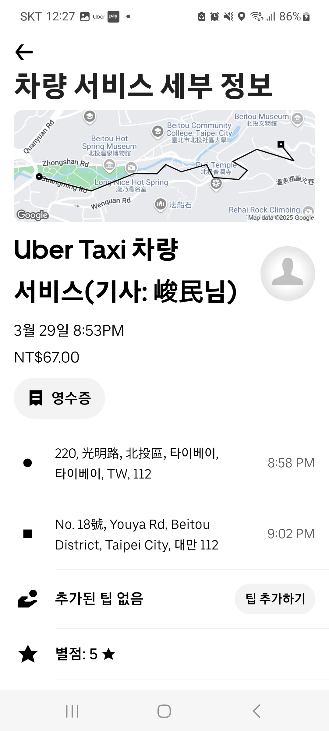 🇹🇼 타이페이에서 우버 탔더니 요금이 이렇게 나왔어요!