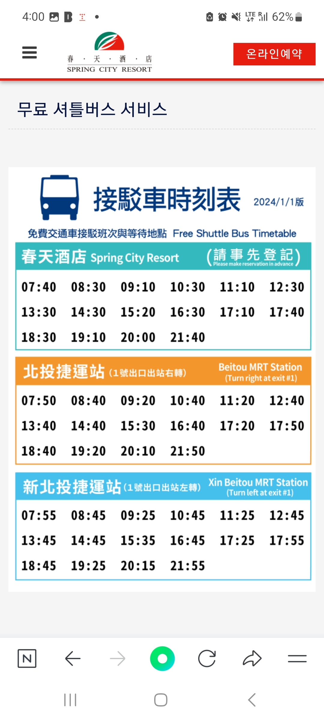 🌿 대만 베이터우 스프링시티리조트 무료 셔틀 시간표 총정리 (25년3월ver)